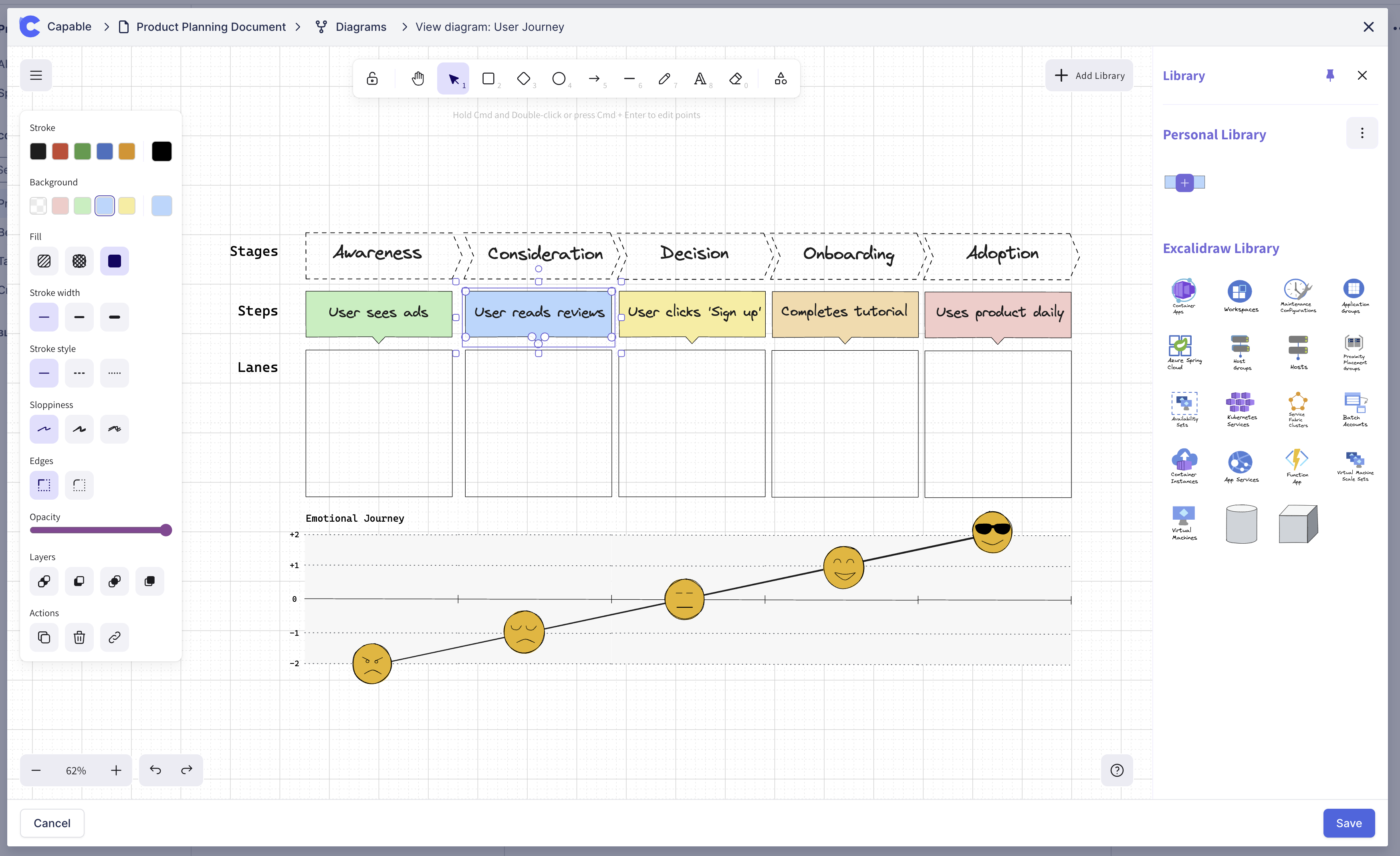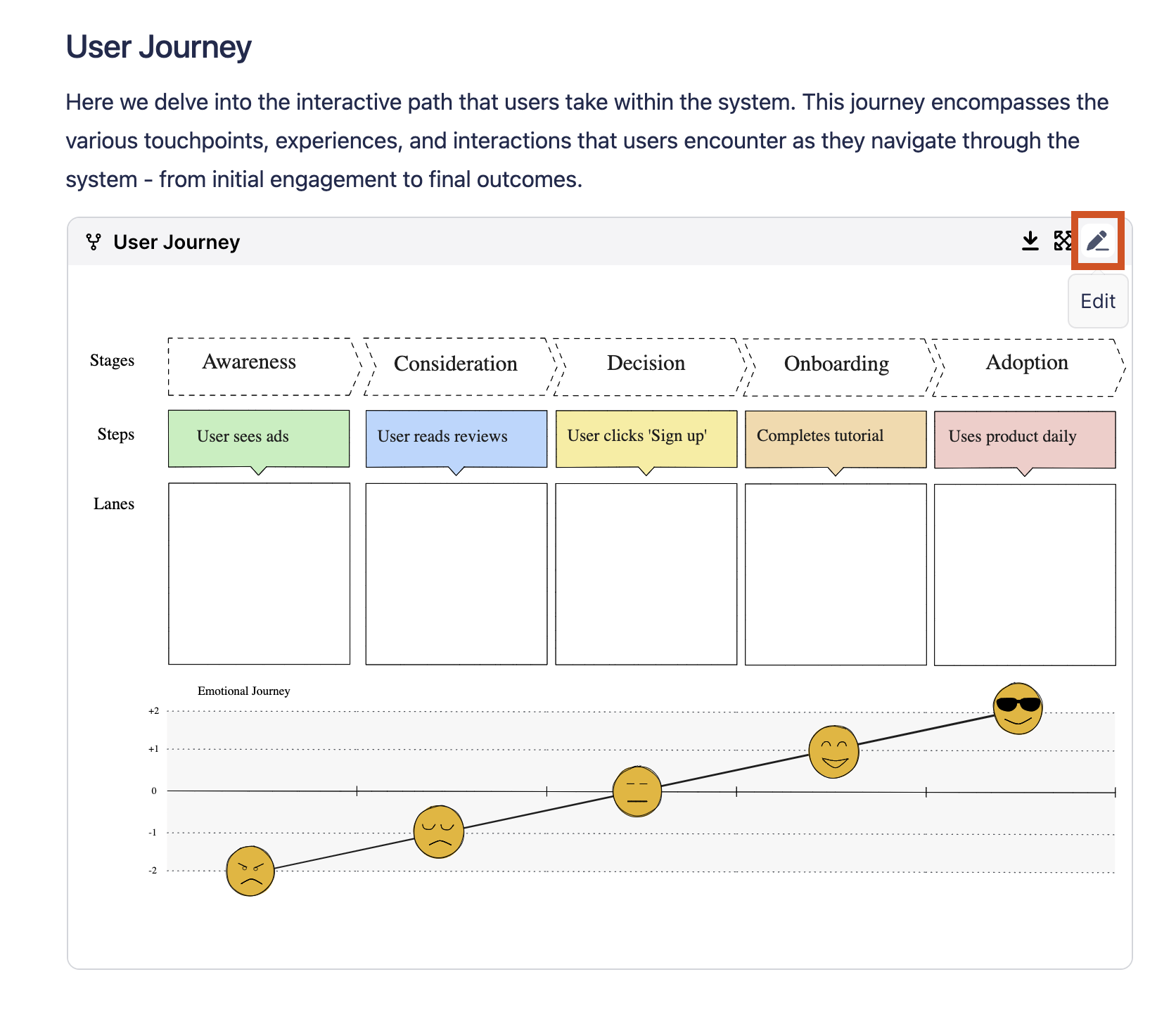 Once you've added a diagram to your Confluence page, you can easily update it using the inline or full-screen editor functionality.