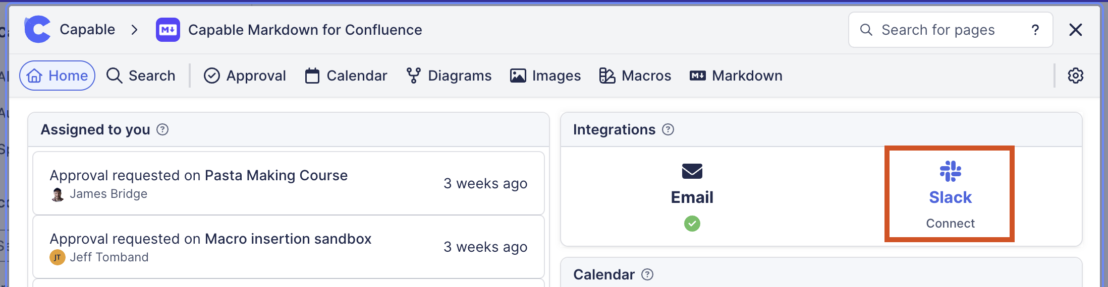 Integrating Confluence Capable with Slack can supercharge your team's workflow by connecting the power of Confluence with real-time communication in Slack. This integration allows you to receive important notifications, manage approvals directly from Slack, and keep everyone on the same page without having to switch between platforms.